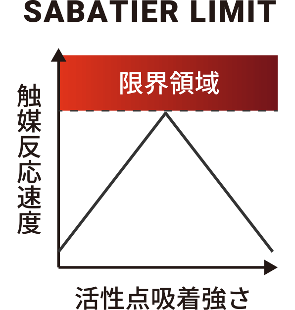 物質変換を語るうえで触媒は欠かせない機能材料ですが、そもそも触媒とは何でしょうか?この問いに対する答えとして、大抵の教科書には「化学反応において自身は変化しないが、反応速度を変化させる物質」という説明がなされています。この説明は1894年にF. W. Ostwardがはじめて「触媒」を定義してから125年間変わっていません。しかしこの「自身は変化しない」という触媒の定義は、触媒自体の反応駆動限界を決める原因にもなっています。例えばP. Sabatierにより提唱された「Sabatierの原理」は触媒能とその限界を説明する単純明快なモデルですが、これはまさに二酸化炭素の省エネルギー変換を阻む一因です。